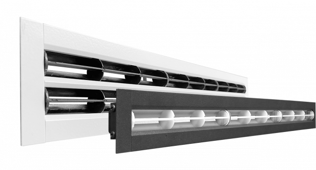 - Двухрядные решетки (серия РАД): Два пересекающихся ряда жалюзи для точного контроля потока в двух плоскостях (вверх/вниз и влево/вправо). Идеальны для фокусировки воздушной струи в нужную зону или ее широкого рассеивания.