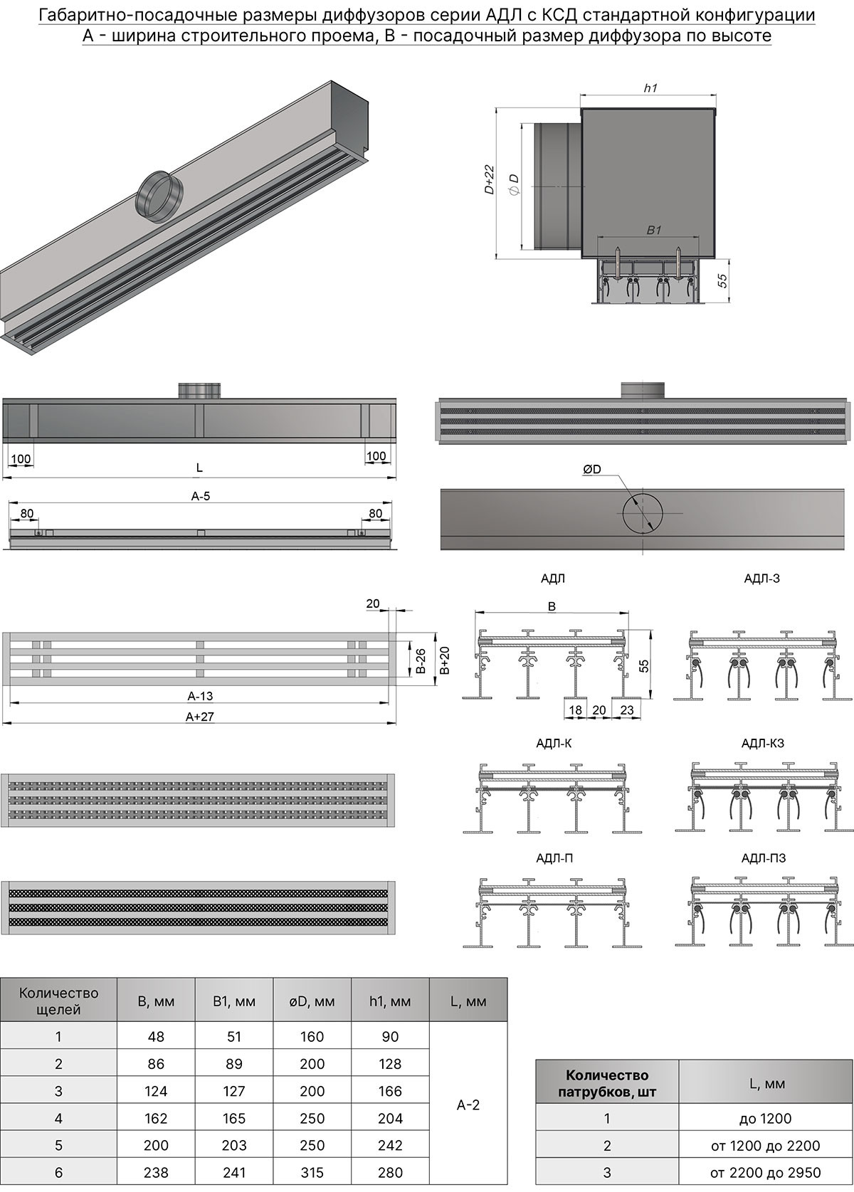 В этом виде решеток отсутствуют направляющие потока воздуха, но есть клапан расхода воздуха. За счет чего АДЛ-К может применяться как в вытяжной, так и в приточной системе вентиляции, регулируя объем подаваемого воздуха. Могут быть самостоятельным изделием в виде одиночной секции или ее составной частью. Возможное количество щелей от 1 до 10.