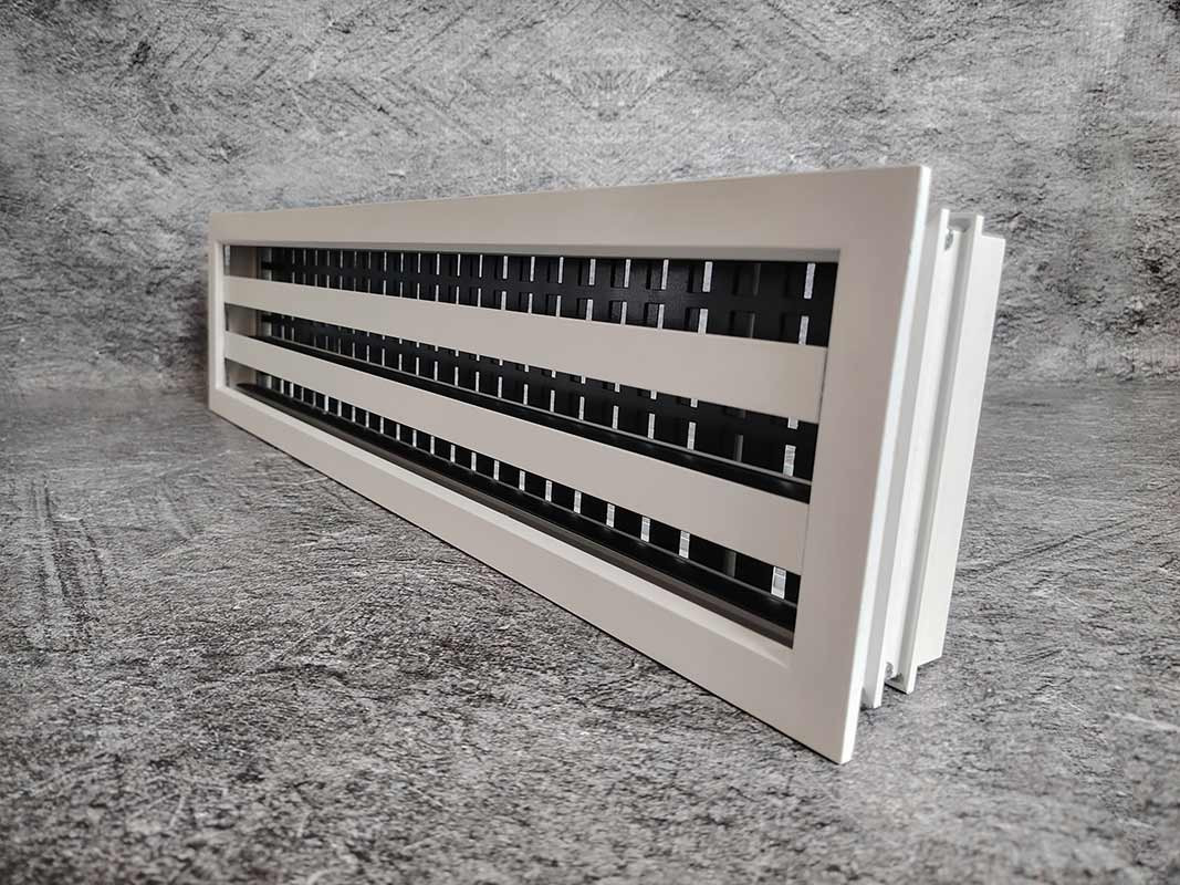 Диффузоры представляют собой декоративную рамку со встроенными неподвижными жалюзи, которые образуют щели (до 10 щелей). Внутреннее исполнение решетки зависит от ее функционального назначения. Они могут быть снабжены ламелями с выравнивателем потока воздуха, регулирующими направление приточной струи в заданную область помещения. Путём регулирования направляющих устройств можно получить распространение воздуха по горизонтали в том и другом направлении, либо по вертикали, без изменения объёма воздуха. Для регулирования объема подаваемого воздуха, диффузор дополнительно оснащается клапаном расхода воздуха. Диффузоры данной серии могут изменять расход до 60% при сохранении устойчивости потока. Их можно использовать на высоте от 2,6 до 4-х метров, при перепаде температур до 12 C.